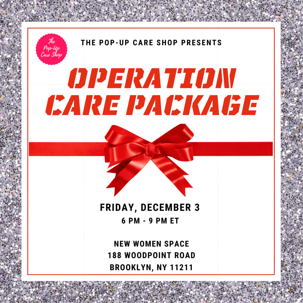 So this year we are reinventing how we give back. On Friday, December 3rd from 6- 9 PM ET, we are hosting Operation Care Package at New Women Spacein Brooklyn.